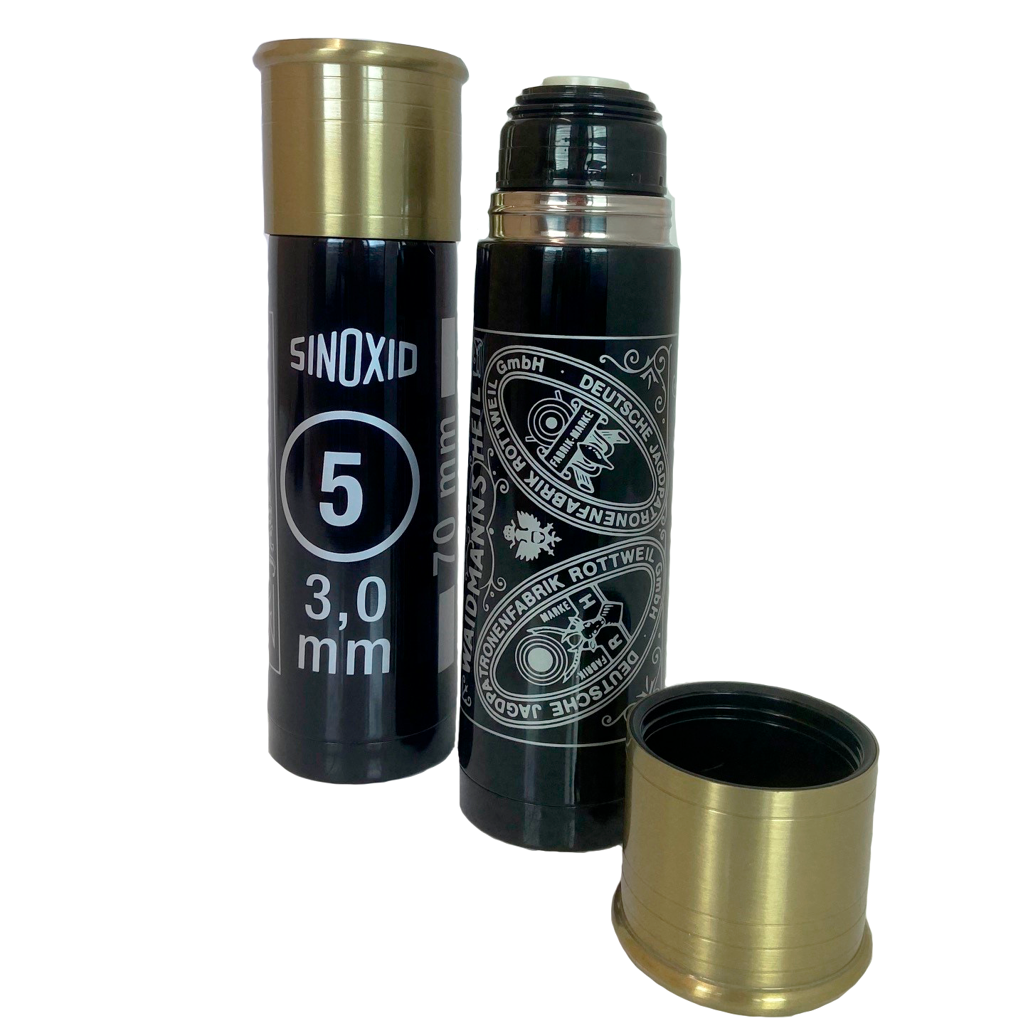 Rottweil 12 Gauge termospullo on valmistettu teräksestä. Pullon muotoilu noudattaa Rottweilin haulikonpatruunamuotoilua. Täydellinen lahja metsästyksestä kiinnostuneelle. Uuden nailonappikorkkimekanismin ansiosta pullo ei vuoda lämpöä ulos pullosta.