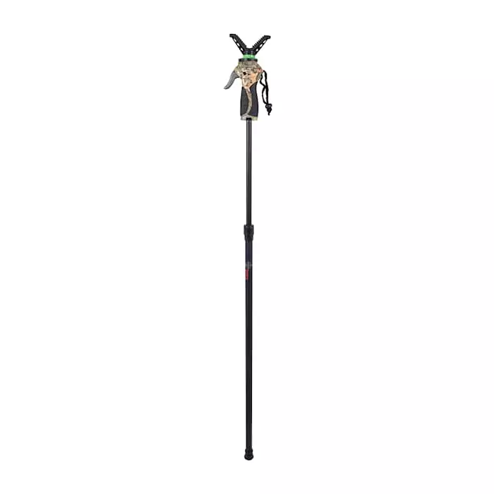 Tekee ampumisesta turvallisempaa ja nopeampaa kaikissa asennoissa. Teleskooppivartinen ampumatuki on kevyttä alumiinia. Turvallisempaan ja nopeampaan ampumiseen kaikissa tilanteissa. Ergonomisesti suunniteltu kahva. Tukihaarukka pyörii 360°.