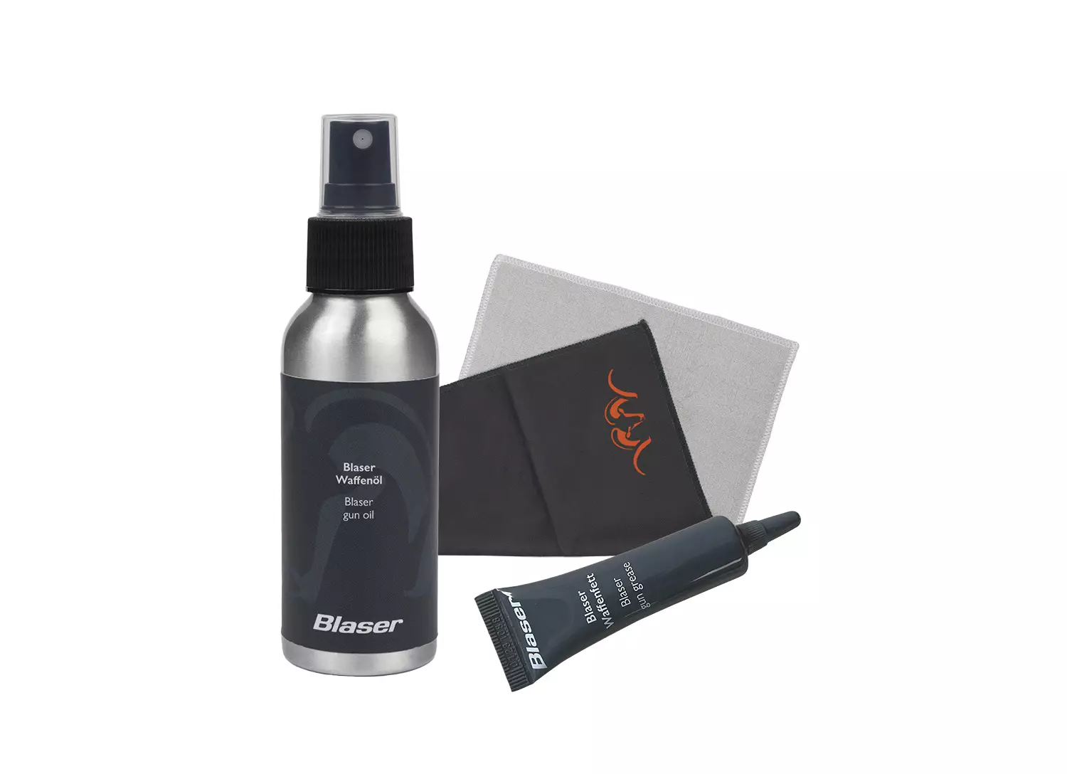 Blaser aseenhoitosarja sisältää kaiken tarvittavan aseen huoltoon. Pakettiin kuuluu Blaser aseöljy, jolla poistat ampumisesta syntyneen lian ja suojaat aseen pintoja ruostumiselta, Blaser aserasva sekä puhdistusliina öljyämistä varten.