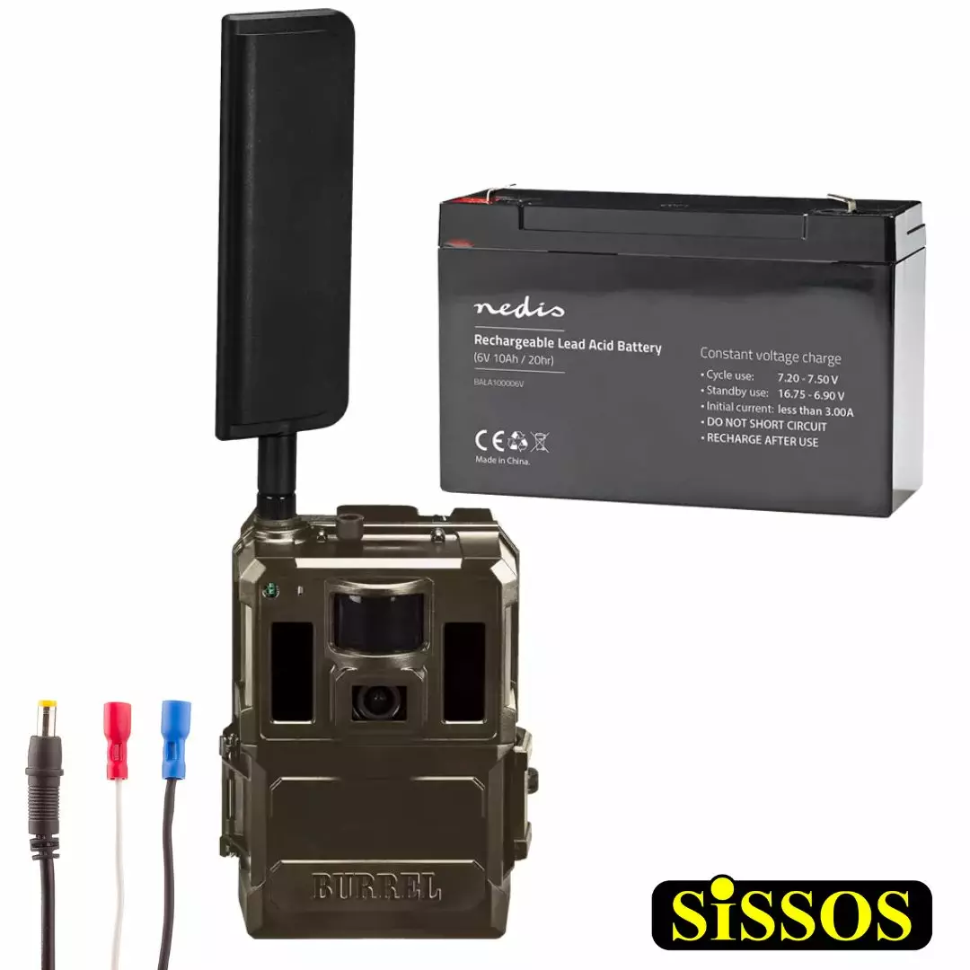 Mukana riistakameran lisäksi 7,2 Ah akku ja akkukaapeli