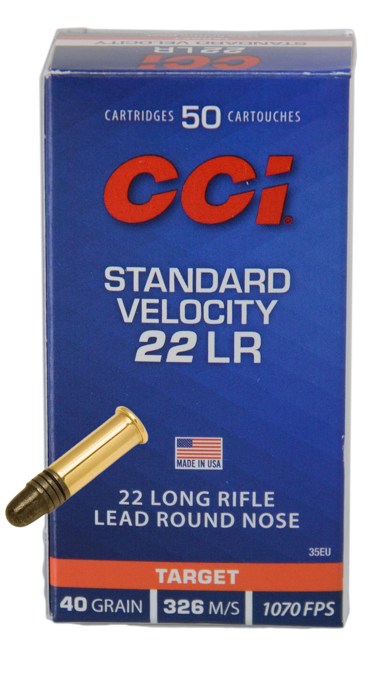 CCI .22lr Standard on lämpimillä keleillä aliääninen edullinen pienoiskiväärinpatruuna yleiskäyttöön. 326 m/s.