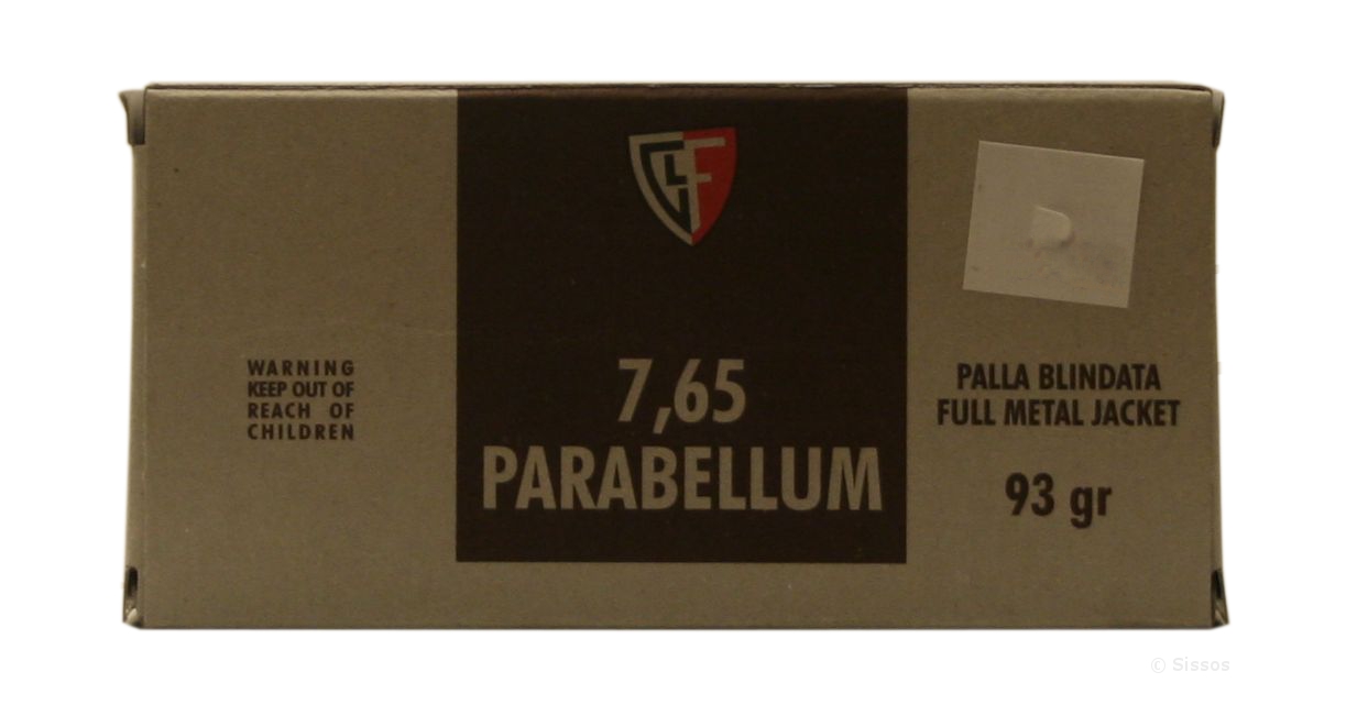 Fiocchi 7,65 Parabellum 6,0g FMJ on rata-ammuntaan tarkoitettu patruuna. 375 m/s.