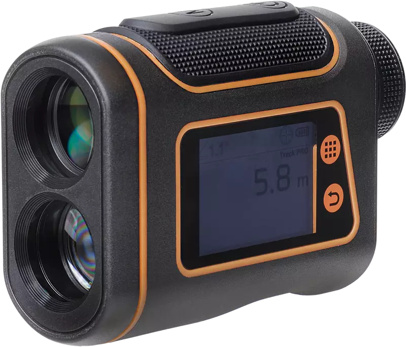 Focus Track RF PRO antaa sinulle mahdollisuuden mitata horisontin ja mittauspisteen välisen kulman, ja se voi ilmoittaa vaakasuoran etäisyyden (kulmakorjattu etäisyys) ja korkeuden kohteeseen. Se on täydellinen apuväline pitkän matkan ammunnassa erilaisissa maastoissa tai kun haluat selvittää etäisyyden kohteeseen, kukkulan tai puun korkeuden!