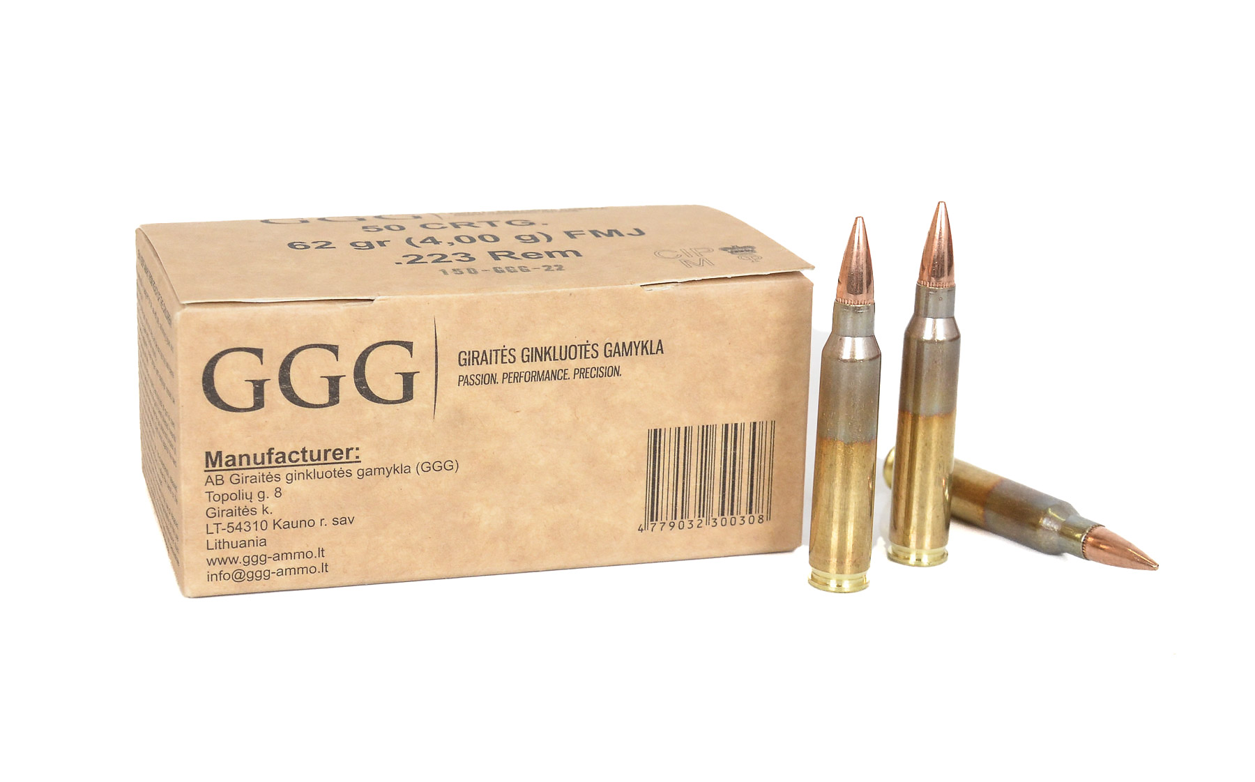 GGG .223 Rem. FMJ 4.0 g patruuna soveltuu niin rataharjoitteluun kuin linnun metsästykseenkin.