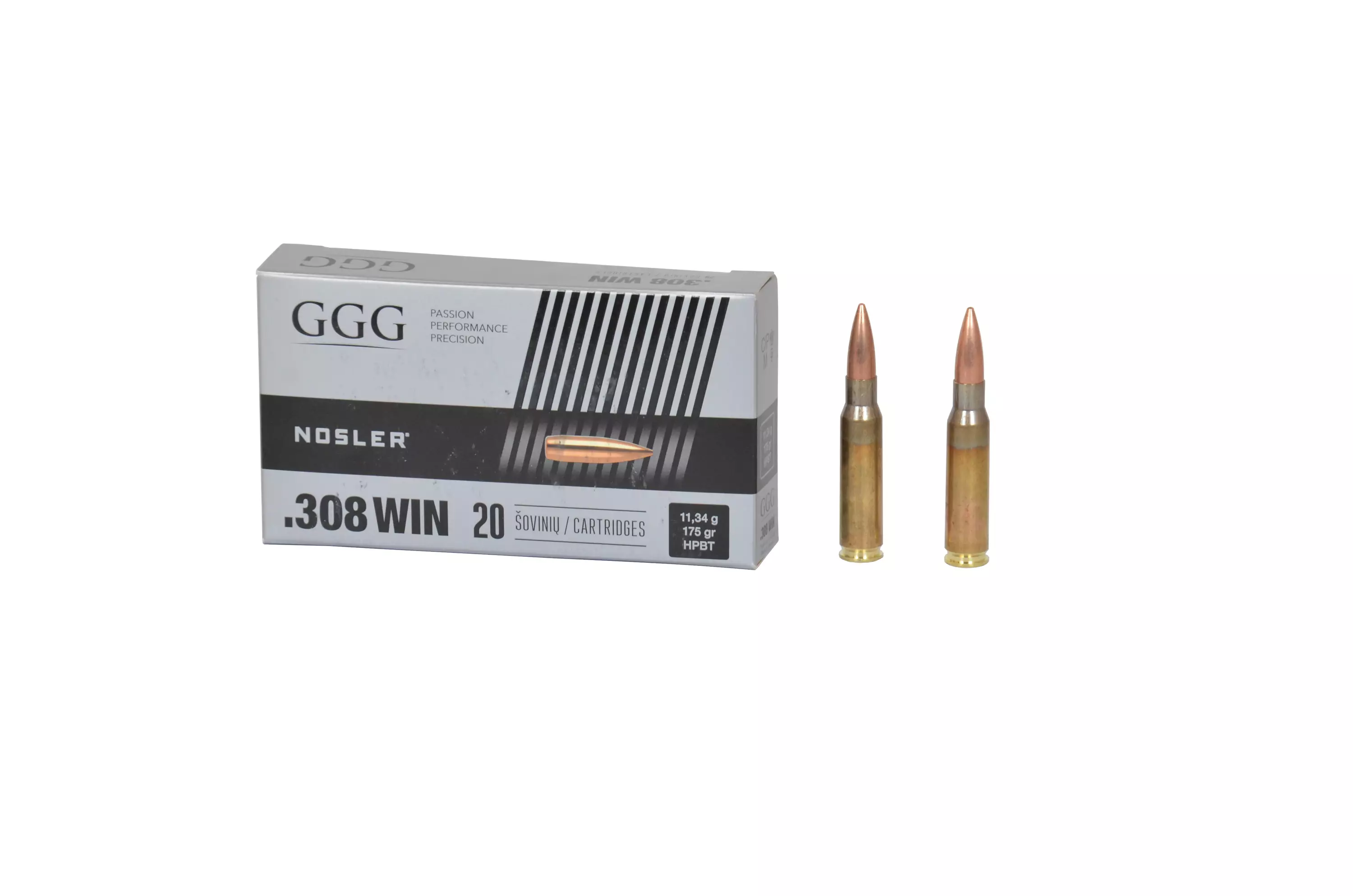 GGG .308 Win HPBT 11,3g Nosler Kaliiperi: .308 Win Rasiakoko: 20 kpl Luodin tyyppi ja paino: HPBT Nosler reikäpää 11,3g/ 174gr Lähtönopeus: 810 m/s Käyttötarkoitus: Tarkkuusluoti radalle tai... Lue lisää