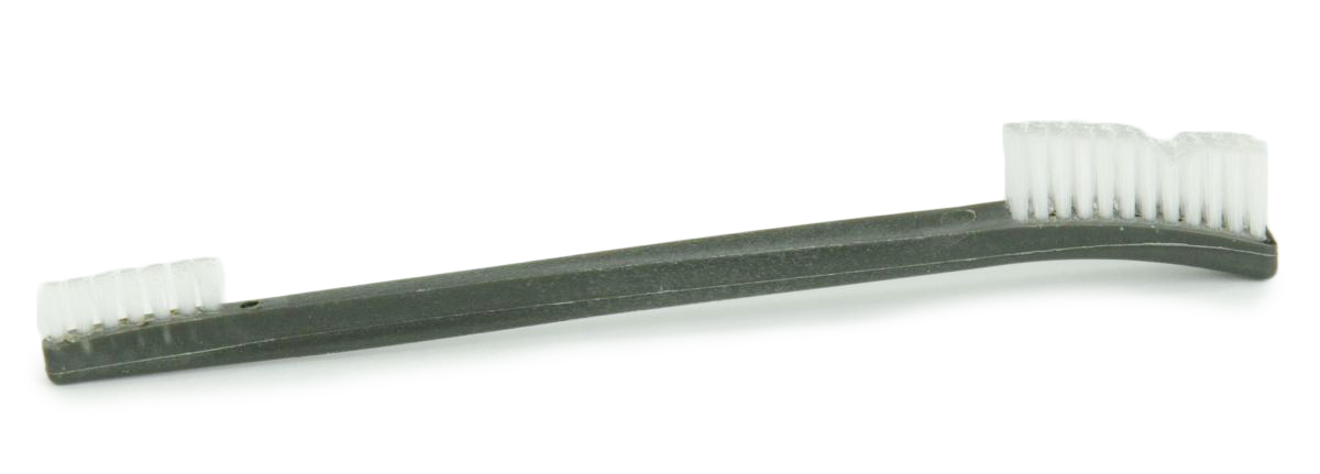 Hammasharjaa selvästi pitkäikäisempi ja jämäkämpi puhdistusväline. Kapea pää on oikein kätevä pistoolin luistin urien puhdistuksessa.