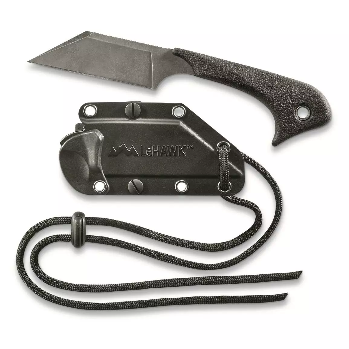 Outdoor Edge LeHawk on pieni, mutta todella suorituskykyinen veitsi. LeHawk terän pituus on 71mm, mutta kokonaispituus jää vain 165mm mittaiseksi, eli todella kompakti pikkujättiläinen. Synteettinen kahva antaa tukevan otteen. Todella vahva kotelo. Veitsi joka soveltuu päivittäiseen käyttöön kokonsa ja ergonomisen muotoilunsa puolesta.