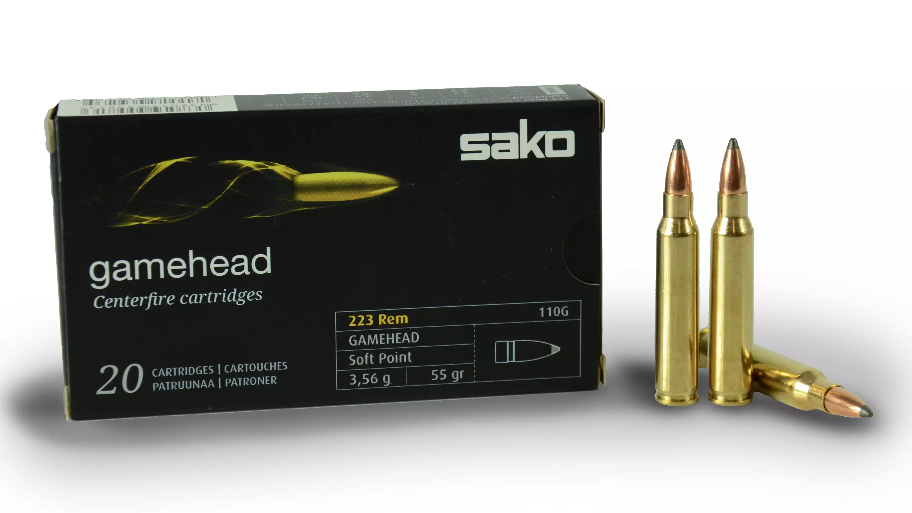Sako .223Rem. Gamehead 3,56 g on perinteinen lyijykärkinen patruuna metsästykseen. Gamehead on osoittautunut vuosien saatossa luotettavaksi pienriistapatruunaksi.