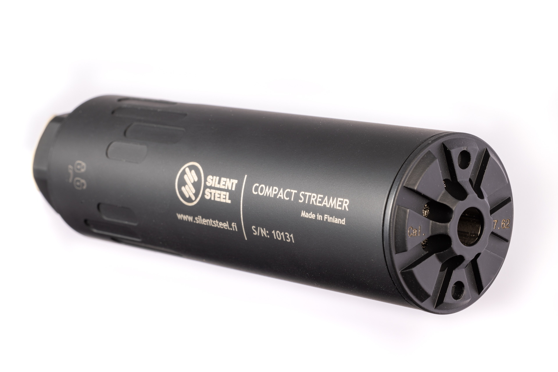 Ladataan tiedostolistaa...Silent Steel Compact Flow Streamer on mallisarjan keskikokoinen ja suosituin malli. Läpipuhaltava vaimennin ei merkittävästi nosta aseeseen palaavan kaasun painetta tai määrää, joten kyseessä on ihanteellinen ratkaisu erityisesti suorakaasuiseen, tai blowback-periaatteella toimivaan kivääriin. Läpivirtaava vaimennin vähentää myös kaasumännällä toimivien kivääreiden likaantumista ja kulumista. Läpivirtaava vaimennin käytännössä poistaa tarpeen säädettävälle kaasuportille. Ruostumattomasta teräksestä valmistettuna vaimennin kestää hyvin korkeitakin lämpötiloja ja vauhdikasta menoa, vaimenninta voi käyttää myös sarjatuliaseessa.