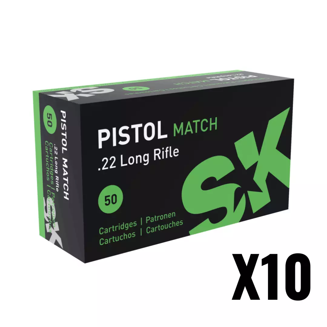 SK .22 LR Pistol Match 2,59g on aliääninen yleispatruuna, joka soveltuu paitsi kaikkiin 25m:n lajeihin, myös 50m:n vapaapistooliammuntaan. 286 m/s.