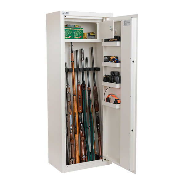 Suomi RS8 on uuden aselain mukainen sertifioitu raskas asekaappi ja soveltuu maksimissaan 8 aseen säilyttämiseen. Asekaappi on testattu vaativan EN-14450:2006 S1 -standardin mukaisesti ja se on valmistettu erittäin kestävästä 3 mm teräksestä. Lukitukseen kaapissa käytetään murtovarmaa pulttilukitusta sekä Kaba Mauer 71111 -turvalukkoa. Lukittava ylähylly ja ovessa tilavat avohyllyt tavaroiden ja patruunoiden säilytykseen. Kaappi on myös halutessaan mahdollista pultata lattiaan tai seinään valmiiden kiinnitysreikien kautta.