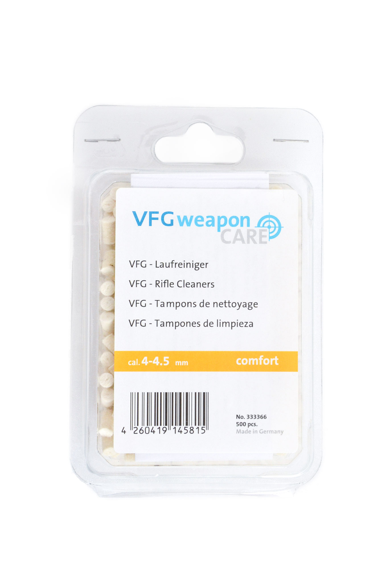 VFG-huopatulppien avulla aseen piipun puhdistaminen on nopeaa ja helppoa. Aseen piippu tulee puhdistaa säännöllisesti, koska jokaisen laukauksen myötä aseen piippuun jää lyijyjäämiä, jotka vaikuttavat aseen tarkkuuteen. Tulpat ovat hieman isompia kuin piipun sisähalkaisija, joten piippu puhdistuu tehokkaasti rihlauksen pohjia myöten. VFG-huopatulpat on valmistettu puhtaasta villahuovasta.