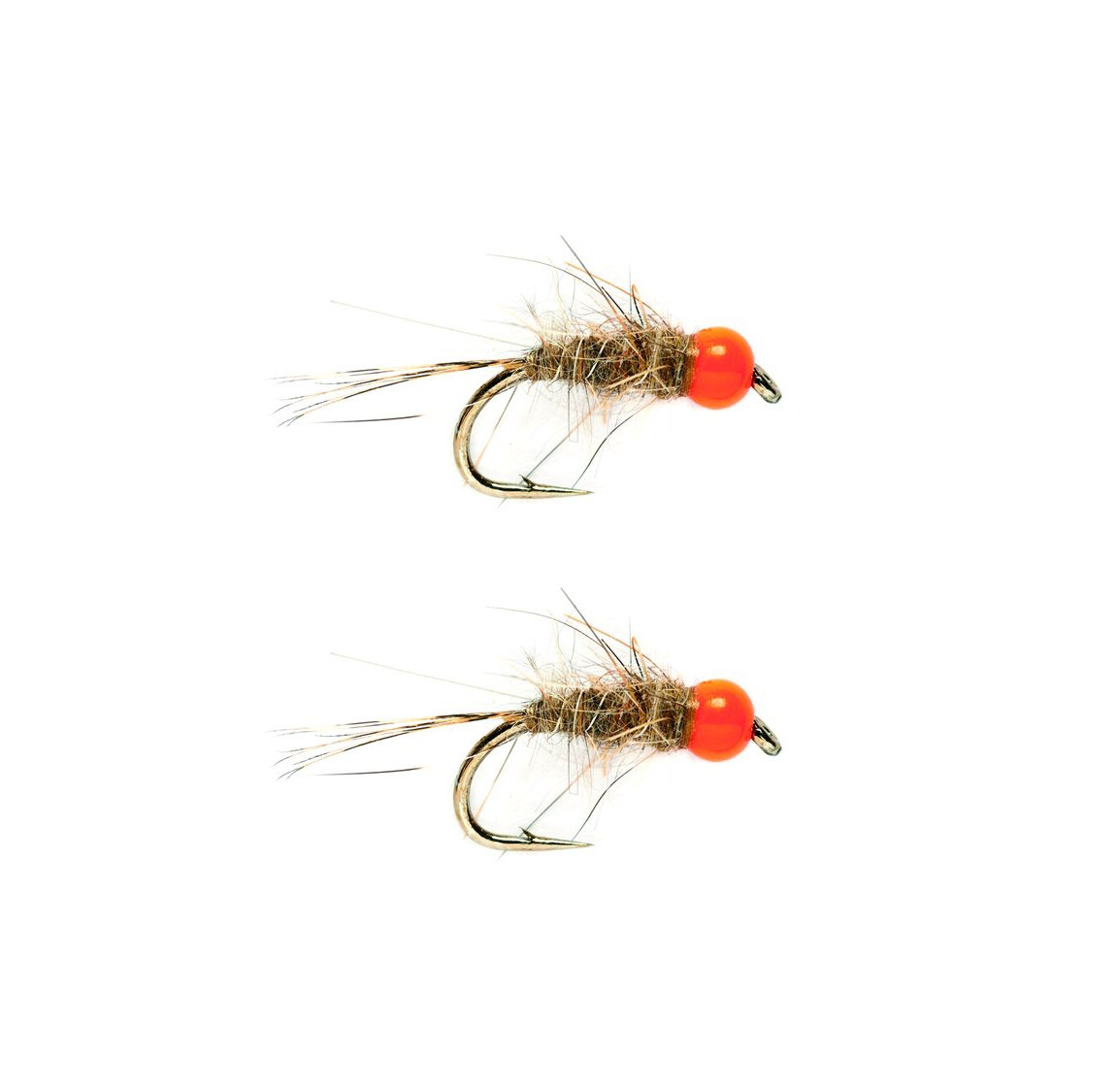 Luonnollisen sävyinen nymfi oranssilla iskupisteellä, joka saa nälkäisen lohikalan innosta soikeaksi! Joskus luonnonkauneus ei riitä, ja vasta erottuva iskupiste saa kalan kiinnostumaan nymfistäsi!