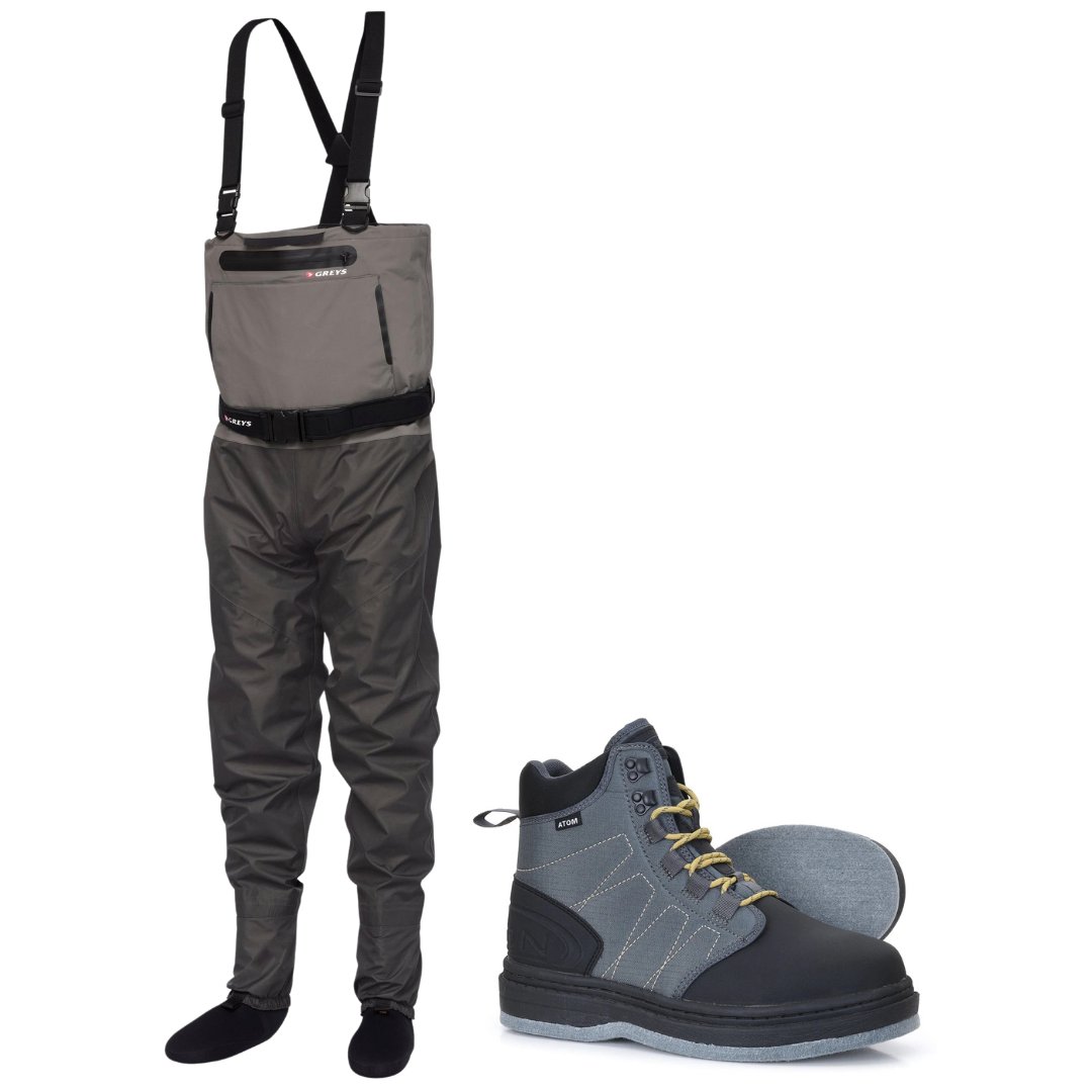 Kahluupaketti jossa housuina Greys Tital kahluuhousut ja kenkinä Vision Atom huopapohjilla. Alla tietoa tuotteista:
