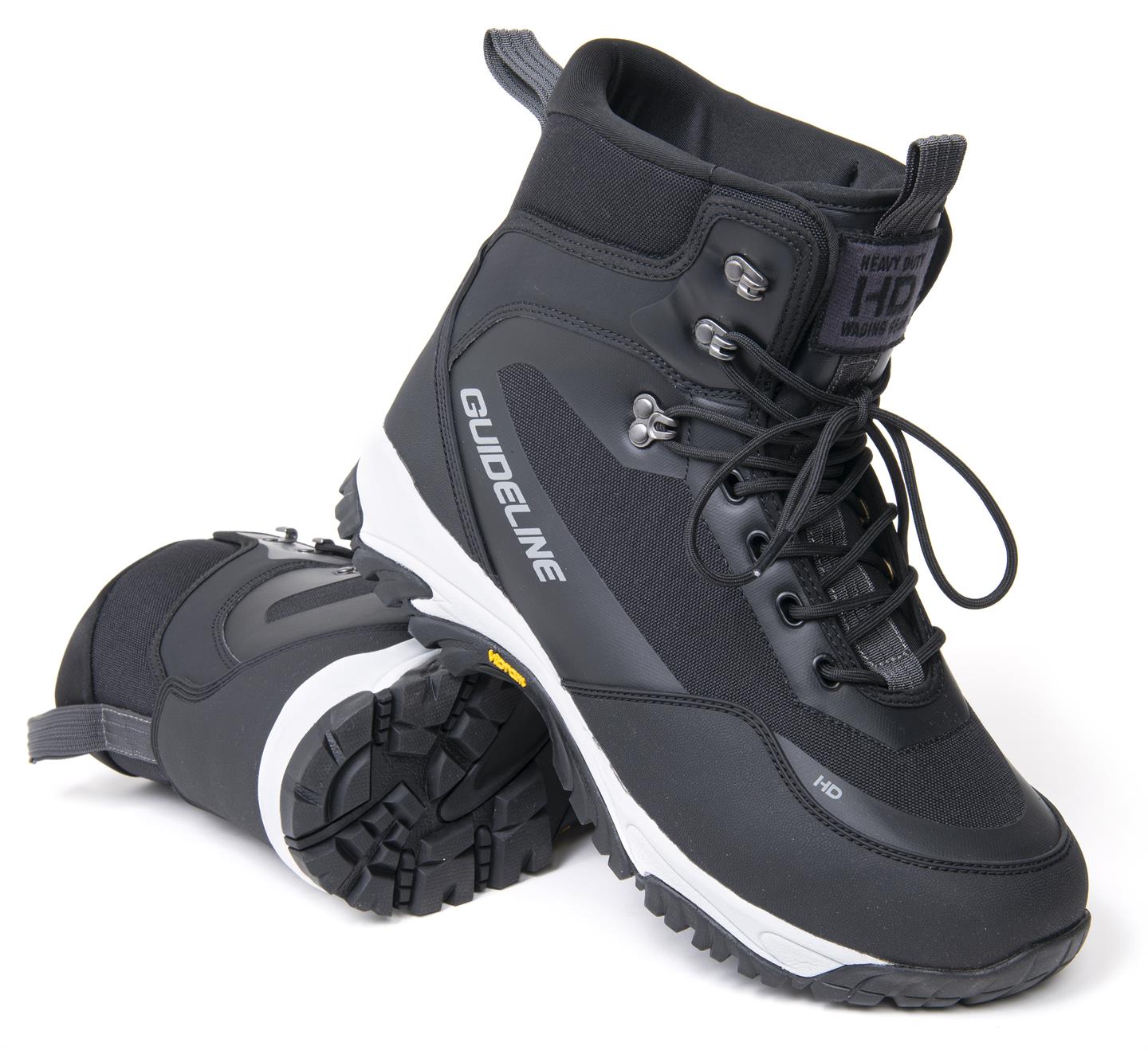 Guideline HD (Heavy Duty) Vibram kahluukengät on suunniteltu kestämään kovimmatkin kalastusolosuhteet. Korkea varsi, paksut pehmusteet sekä vahva ulkomateriaali tekevät näistä kengistä todelliset Heavy Duty kahluukengät.