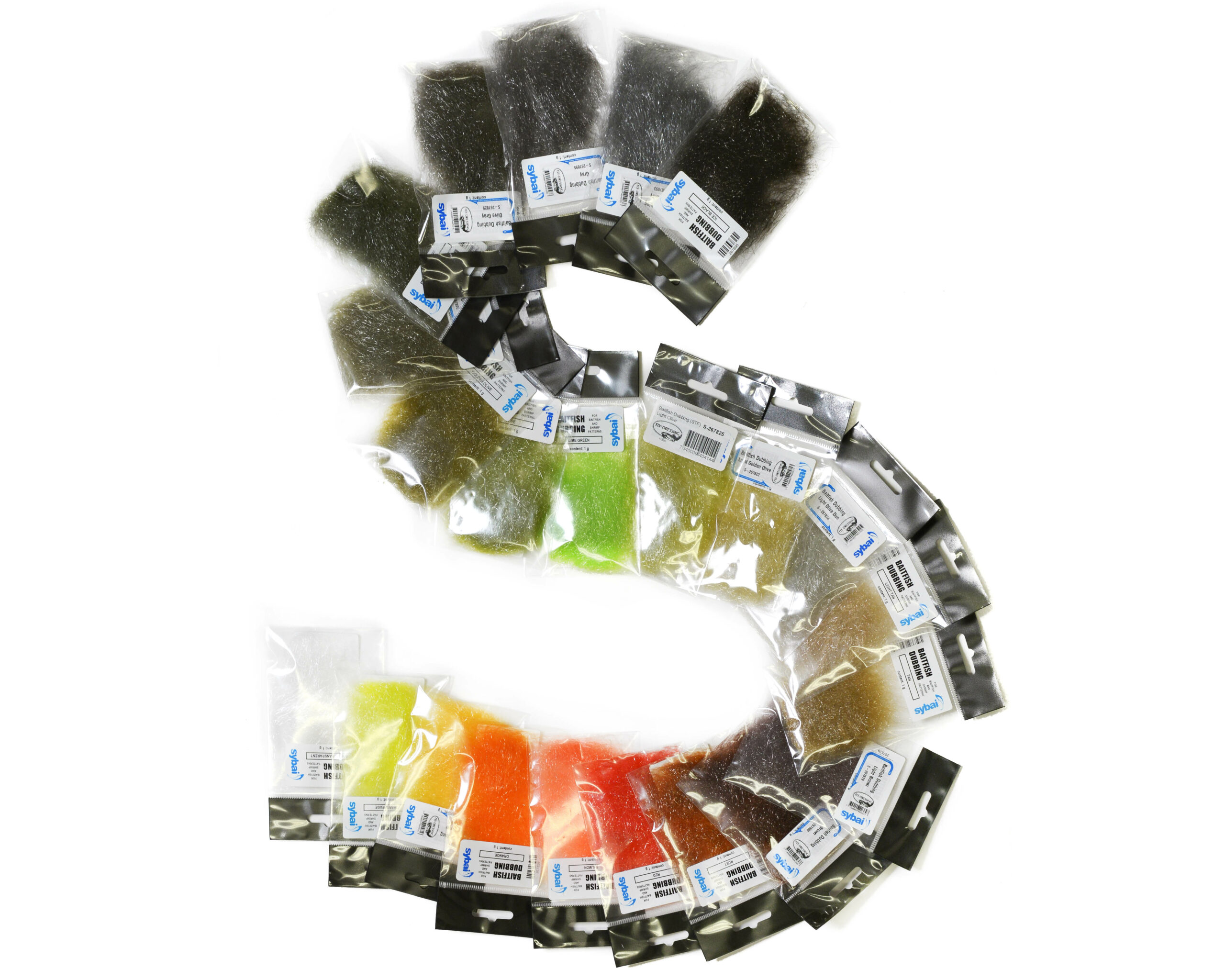 Sybai Baitfish Dubbing on erittäin kevyttä ja pitkäkuituista synteettistä dubbingia, jonka kuidut ovat hivenen karkeampia ja läpikuultavampia. Dubbing on kiiltävää muttei kuitenkaan säihkyvä. Käytä Baitfish Dubbingia sellaisenaan tai heitä sitä hyppysellinen unelmiesi blandikseen. Tätä dubbingia voit käyttää niin pitkäpyrstöisten streamereiden rungoissa, liitseissä kuin lohiperhoissa, imitoitpa sitten katkaa tai pikkukalaa. Tunnetaan myös nimellä STF (Synthetic Translucent Fiber).