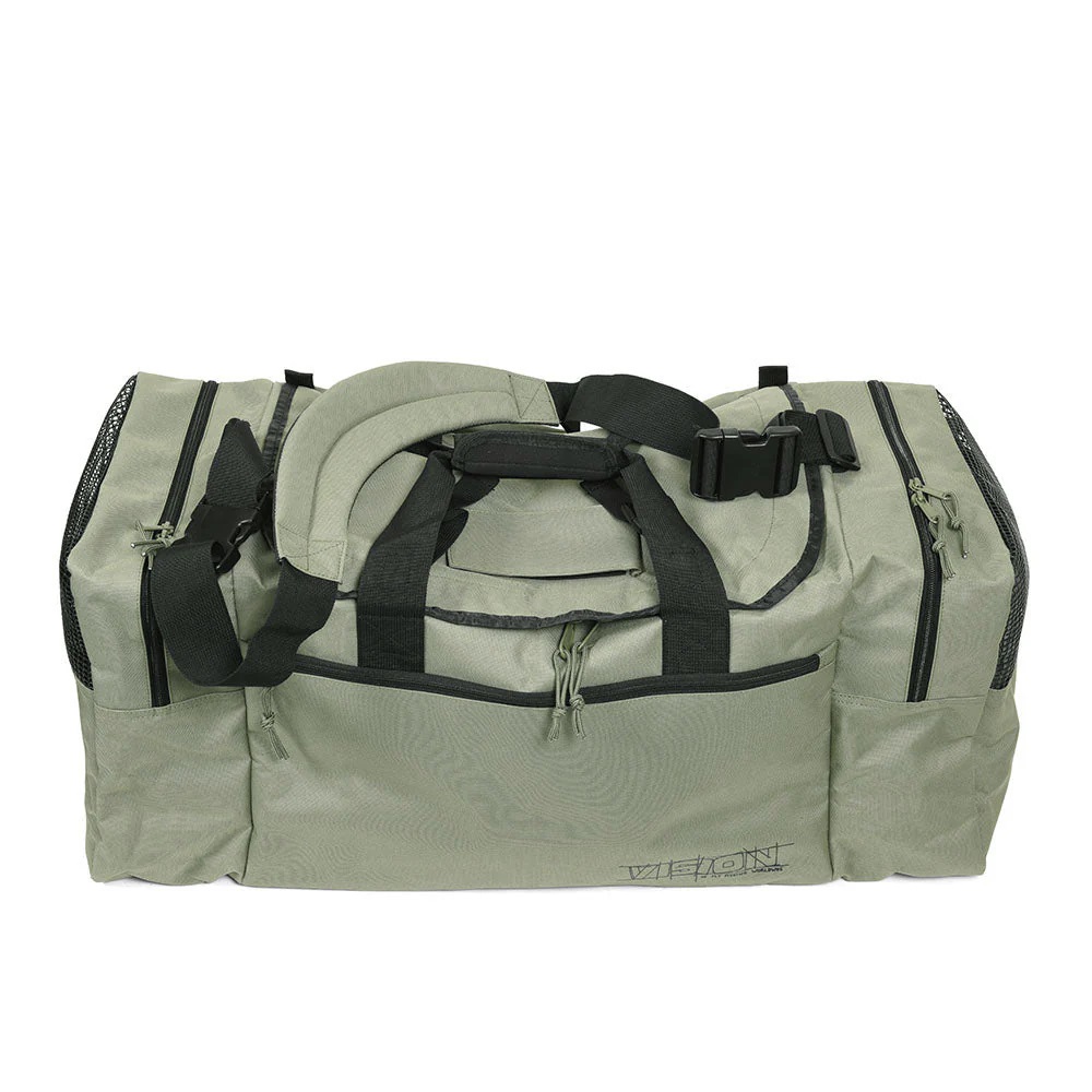 Tämä monipuolinen varustelaukku on valmistettu vahvasta 600 denierin Oxford-polyesteristä. Lujatekoinen kassi pitää sisällään ison päälokeron vaatetukselle U-muotoisella vetoketjulla varustettuna. Tämän lokeron sisällä on verkkokangastaskuja pienelle tarvikkeelle tai vaikkapa keloille, jotka pysyvät paikoillaan elastisen resorin ansiosta. Päätytaskuihin on lisätty tuuletusverkot, jotta märkien kahluukamojen kosteus haihtuisi kassista ulos. Laukussa on lisäksi iso sivutasku kaikenlaiselle tilpehöörille. Mitat:82cm x 34cm x 34cm. Lisäksi laukussa on nimilapputasku sekä säädettävä olkahihna pehmusteella. 50 mm leveät kantohihnat ovat myöskin lujaa tekoa ja ne voi kiinnittää toisiinsa Velcro-kiinnityksellä.