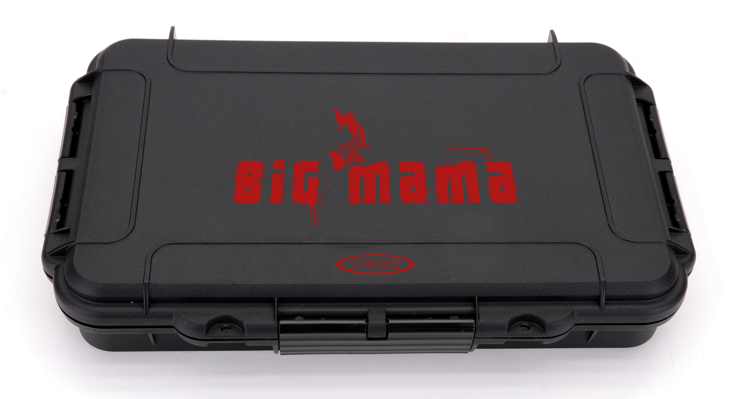 Vision Aqua Big Mama perhorasia on vedenpitävä rasia haukiperhoille ja isoille streamereille. Foam-pinta on kannessa ja pohjaosassa, jolloin rasiaan mahtuu todella paljon perhoja. Lukitus kolmesta eri kohdasta.