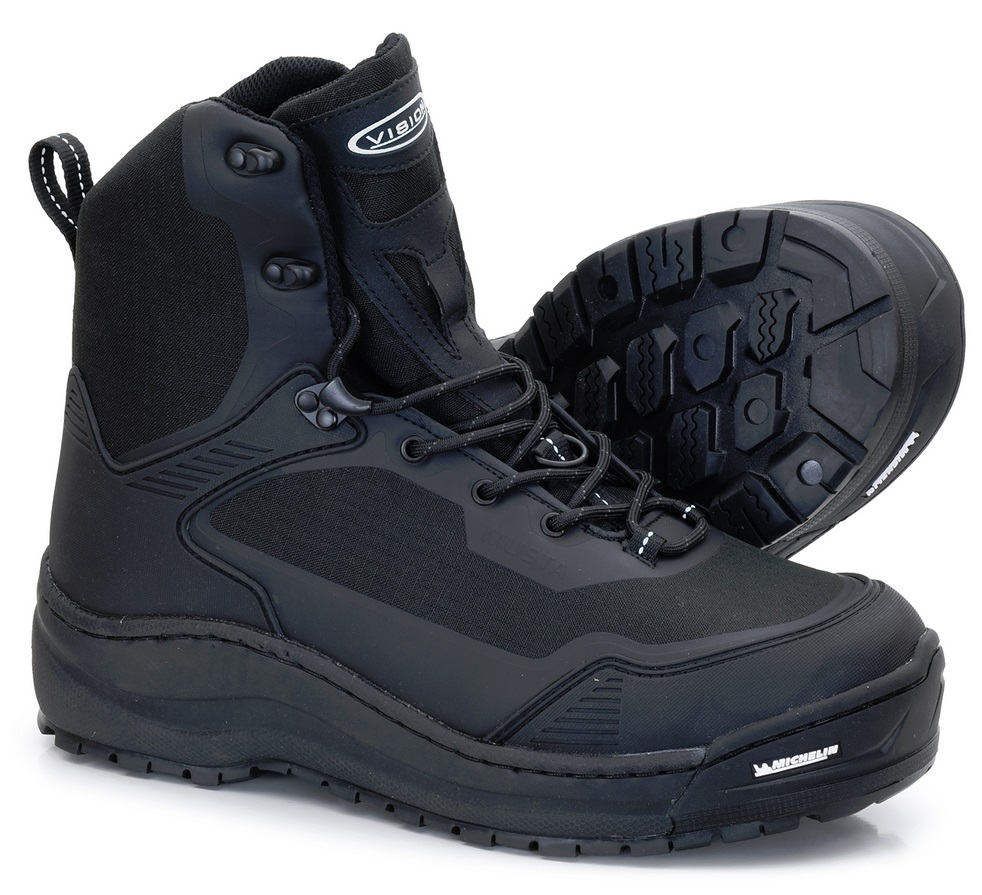 Vision Musta Michelin kahluukengät ovat modernit, kevyet ja laadukkaat. TPU-vahvistukset kriittisissä kulutukselle alttiissa paikoissa (mm. nilkkaosa ja kärki) lisäävät kestävyyttä. Järkevä muotoilu tekee kengästä kuitenkin juuri sopivan, eikä se ole liian kömpelö. Kengän vahva polyesteri-materiaali on märkänäkin kevyttä eikä upotetut tikkaukset tartu risukkoihin. Kenkien Michelin-pohja on maasto- ja talvirenkaista tuttua kumiseosta, joten materiaali on jo vuosia todistanut pitävyytensä ympärivuotisissa ja vaikeissa olosuhteissa. Uusien auton renkaiden tavoin materiaali on melko pehmeää ja "tahmeaa", joten se ei ole liian kovaa ja liukasta monien muiden kenkämallien-/pohjien tavoin.