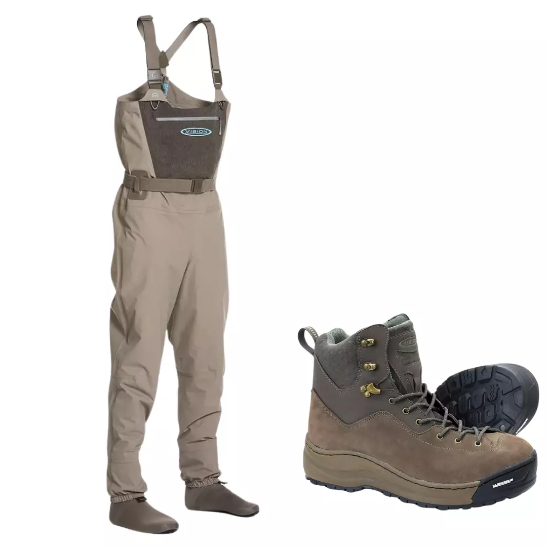 Vision Scout Strip 2.0 kahluuhousut ja Vision Nahka Michelin kahluukengät -kahluupaketti