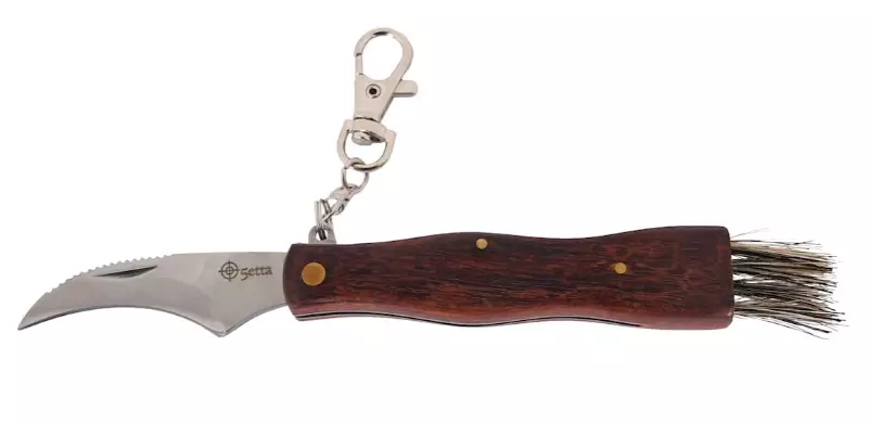 Käytännöllinen sieniveitsi. Karbiinihaka, harja ja pieni kaareva terä, joka sopii erinomaisesti sienien puhdistamiseen sekä metsässä että keittiössä!