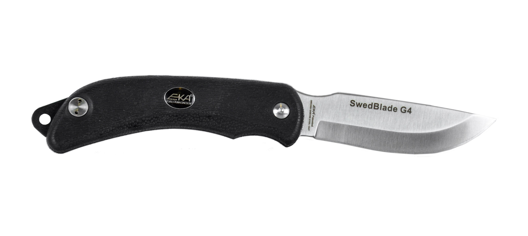 EKA G4 on päivitetty versio supersuosion saaneelle EKA G3 Swingblade-veitselle. Upea ulkonäkö, muotoilu ja huippulaatu on pidetty muuttumattomana: napin painalluksella veistä voi käyttää joko avauspuukkona tai normaalina leikkausveitsenä. EKA on veitsi, joka on suunniteltu metsästäjien toiveita ja tarpeita kuunnellen. Terä lukkiutuu paikalleen ja se on valmistettu ruotsalaisen Sandvikin huippulaadukkaasta 12C27 teräksestä.
