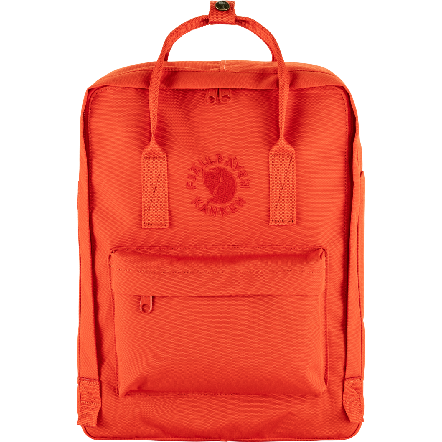 Helppo täyttää ja tyhjentää - Neliön mallisessa Re-Kånkenissa on tilava 16 litran päätasku ja suuri täyttöaukko, jonka ansiosta tavaroita on helppo panna reppuun ja ottaa sieltä pois. Reppu imaisee neliön mallisen muotonsa ansiosta erityisen hyvin sisäänsä pienet läppärit ja koulukirjat. Syvät sivutaskut sopivat täydellisesti puhelimen, puhelimen laturin, pikkutavaroiden tai esimerkiksi sateenvarjon tai juomapullon säilytykseen. Edessä myös vetoketjullinen tasku pikkutavaroille. Yksinkertainen ja käytännöllinen kantojärjestelmä.