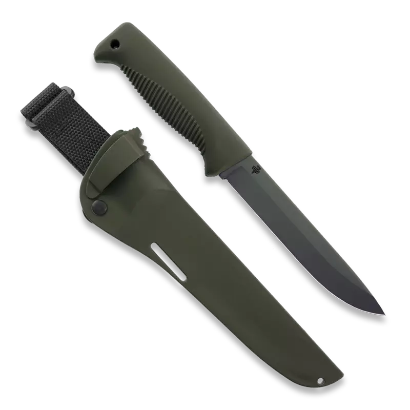 Sissipuukko M95 on kehitetty vastaamaan viranomaisten ja sotilaiden vaativiin tarpeisiin ja toimimaan olosuhteissa kuin olosuhteissa. Terä on laadukkaasta hiiliterästä ja kestää kovempaakin käyttöä. Sissipuukon kahva on valmistettu TPE-muoviseoksesta, joten se pysyy tukevasti kädessä ja kestää kulutusta ja kolhuja. MOLLE- yhteensopivuus sekä lukuisia kanto- ja ripustusvaihtoehtoja.