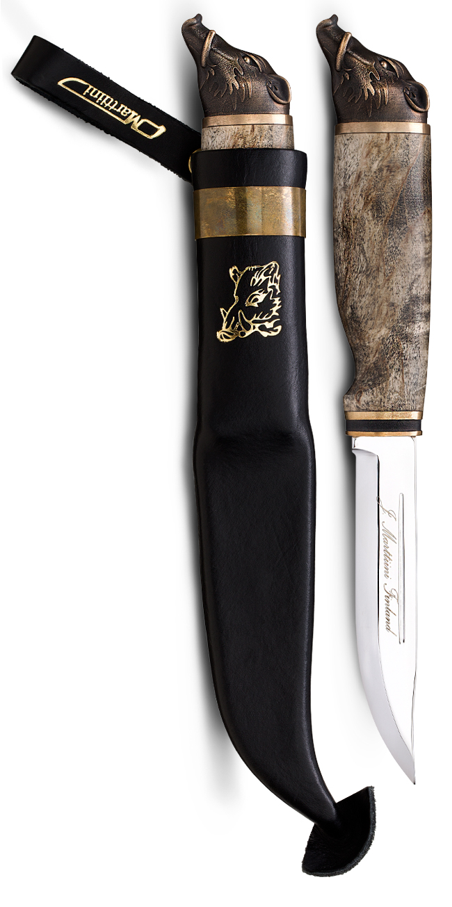 Marttiinin helapuukkojen uusin tulokas on Villisika-puukko. Hela on pronssista valettu uljas villisianpää! Näyttävä käyttöpuukko ja mainio lahjaidea eräilijälle tai metsästäjälle. Visakoivuinen kahva on värivahattu, se kestää käyttöä ja takaa hyvän otteen. Puukon terä on valmistettu kestävästä ruostumattomasta teräksestä. Kromiteräs on helppohoitoinen ja ruostumattomaksi luokiteltu terämateriaali, josta valmistetun terän terävyys säilyy pitkään. Kromiteräksen teroittaminen onnistuu kätevästi esimerkiksi timanttiteroittimilla.
