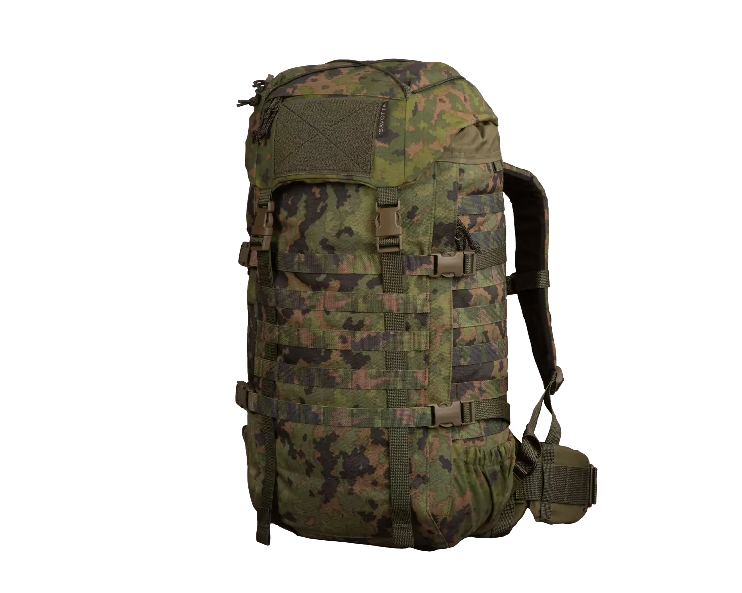 Läpässä on yksi iso päälokero, tilavuus noin 8 litraa, käynti niskan puoleisen vetoketjun kautta. Täytettynä läppä “palloutuu”, ja tyhjänä se litistyy tiivisti kasaan. Tänne sopii esim. sadevaatteet tai taukotakki. Kun läppä kiristetään kompressoituu se itsestään tiiviiksi, estäen sisällön hölskymisen. Läpän päällä on kuminyöristö kevyempien varusteiden kiinnittämiseen. Läpän alapinnassa on kaksi PALS-kujanauhariviä, joihin voi kiinnittää esim. makuualustan.