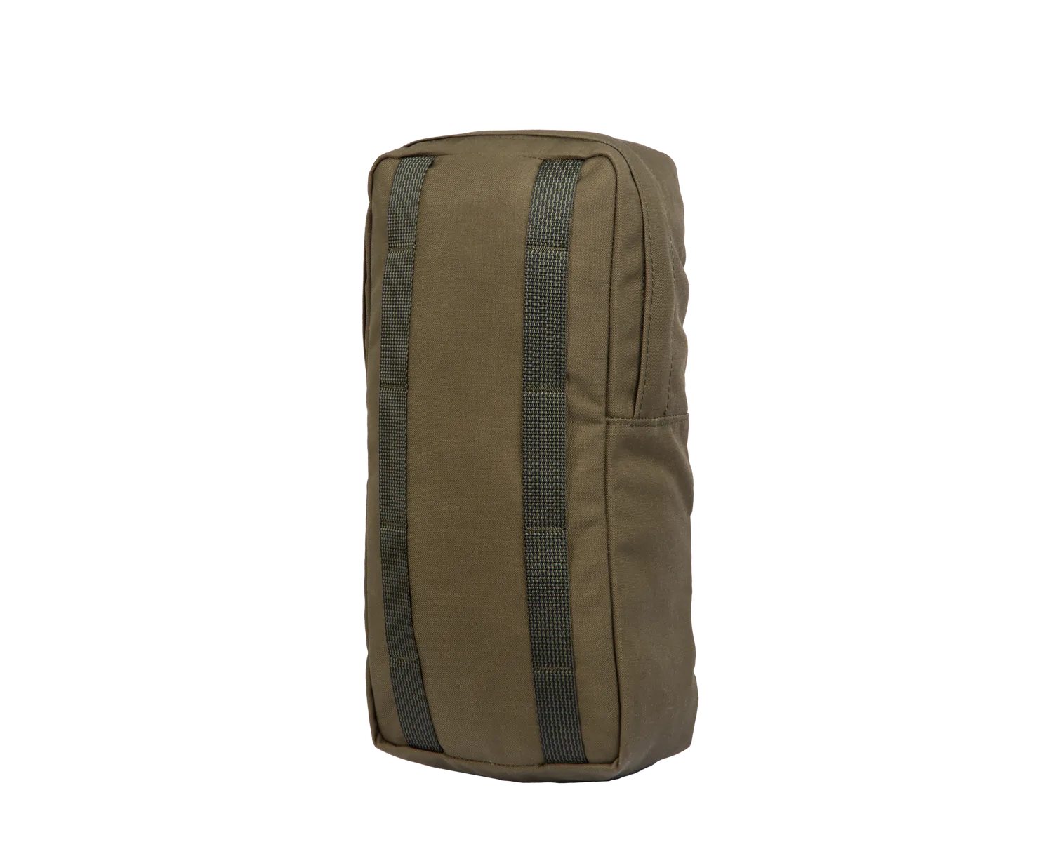 6L side pouch sopii kaikkiin Jääkäri-sarjan reppuihin. Repuissa joissa on vähemmän kuin kuusi riviä PALS-nauhakujastoa sivuilla taskun pohja voi “roikkua”. Voit antaa sivukompressiohihnan hoitaa tämän, tai voit kiinnittää taskun askeleen korkeammalle.