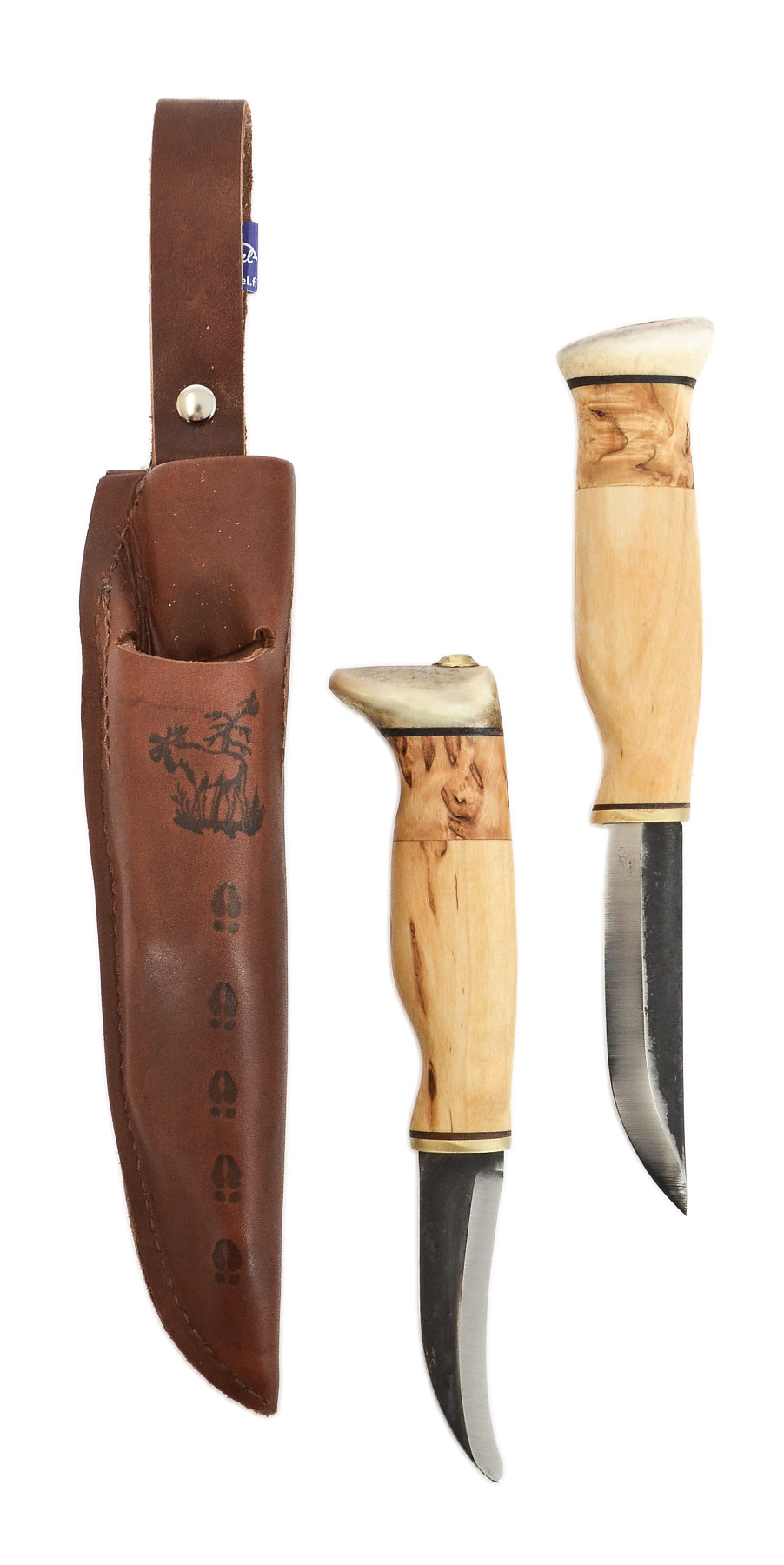 Wood Jewel Kaksoispuukko on visakoivukahvainen puukko pari yhdessä tupissa.